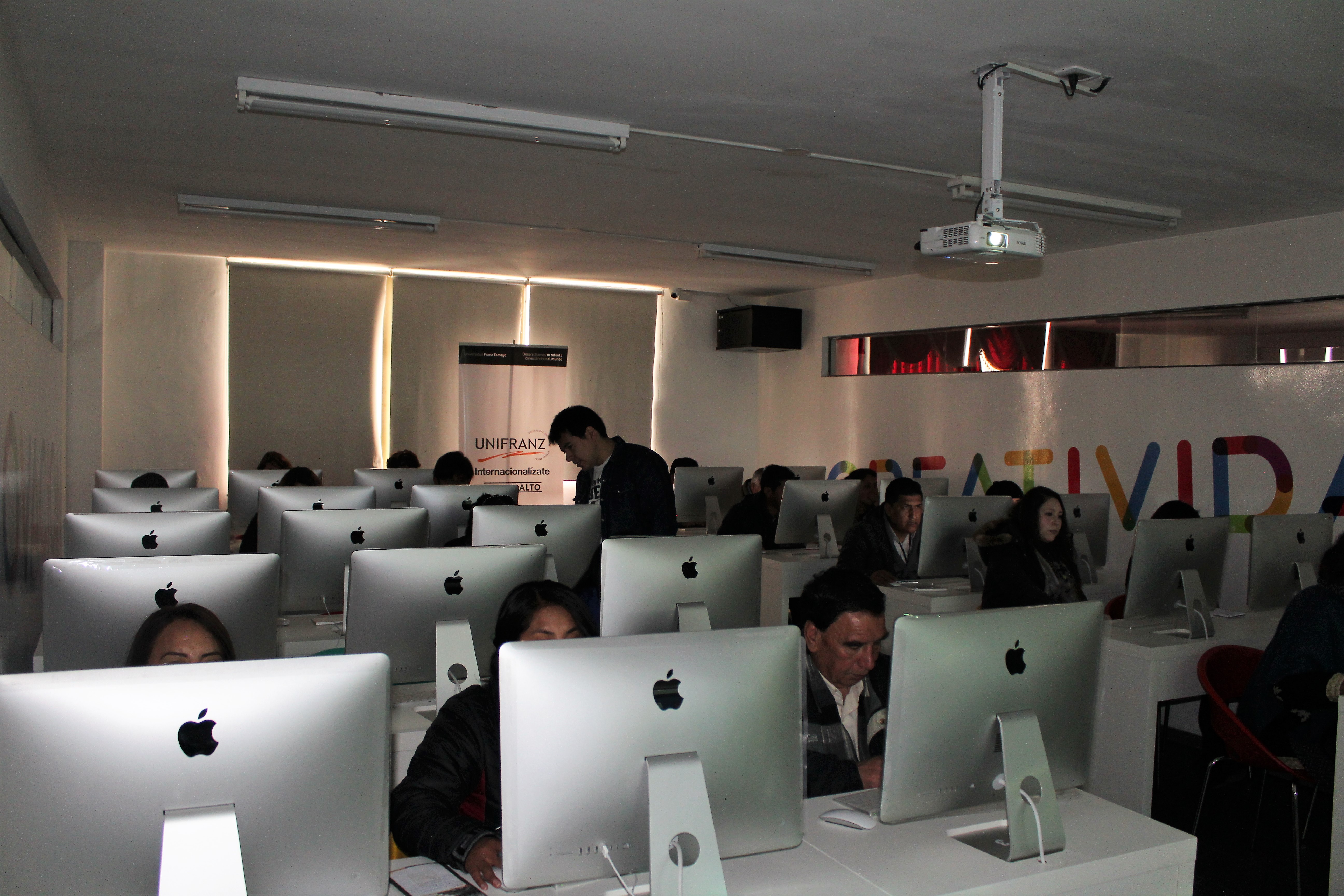 Esta capacitación se llevó a cabo en la Sala MAC de UNIFRANZ El Alto, equipada con 26 computadoras MAC de última generación para el desarrollo de trabajos sobre Diseño Gráfico y Producción Audiovisual.