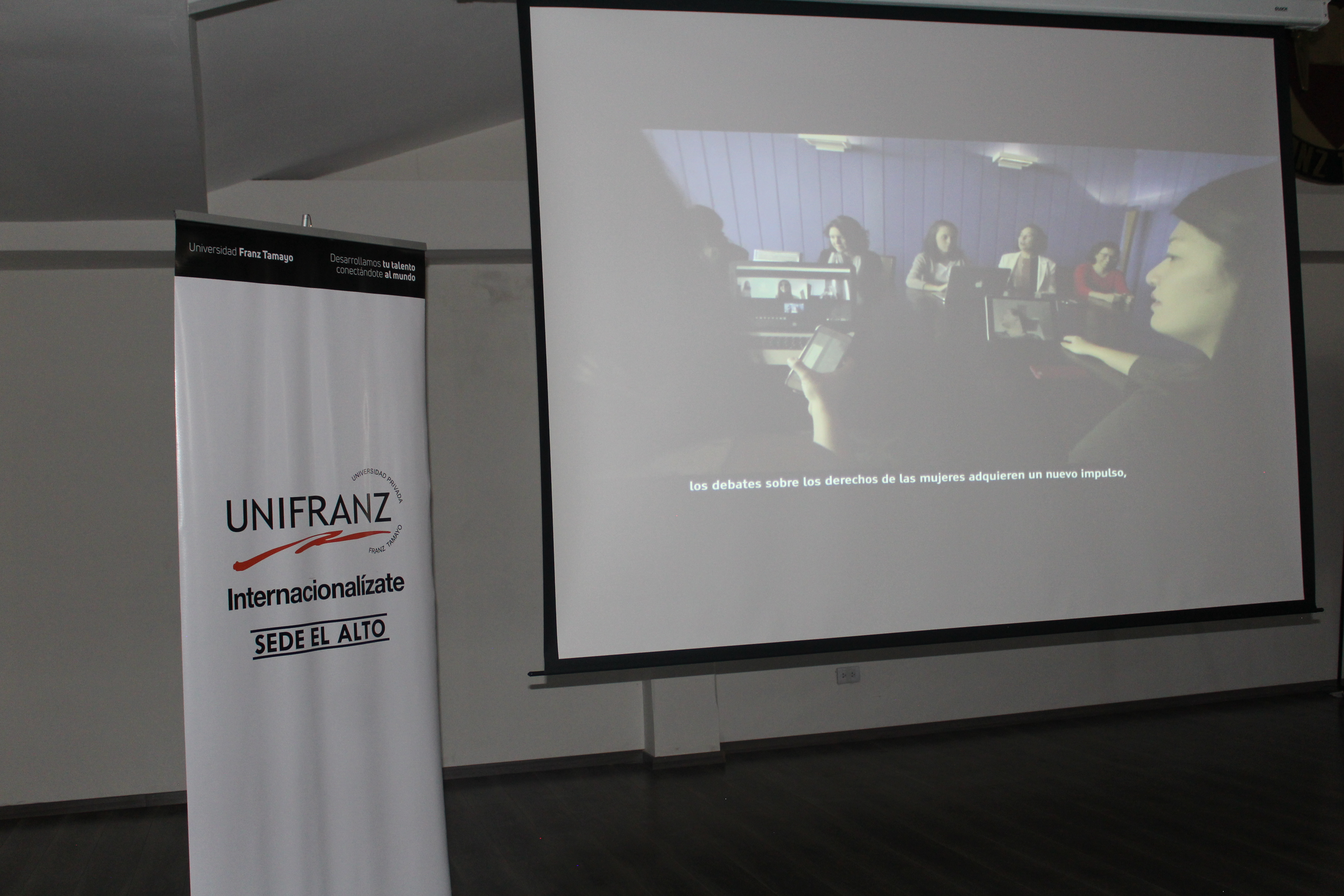 “Este no sólo ha sido un documental sobre las mujeres sino sobre todas las diferencias. Ustedes son jóvenes y no deben generar diferencias, sino respetar la diversidad- Así como ha sido difícil para las mujeres llegar a la Diplomacia o tener mayor presencia y dejar de ser invisibles, también lo ha sido en todas las áreas y lo es aún en las áreas empresariales. Si ustedes ven en las grandes empresas hay pocas o ninguna mujer. Estamos en un mundo donde debemos complementarnos, donde es importante un papel como el otro. Y como mujeres, también tener claro que no debemos detenernos entre nosotras. No nos detengamos unas a otras, debemos esforzarnos porque ninguno de los dos es más importante, sino que debe existir una complementariedad” agregó Eve Gómez, Vicerrectora UNIFRANZ El Alto.