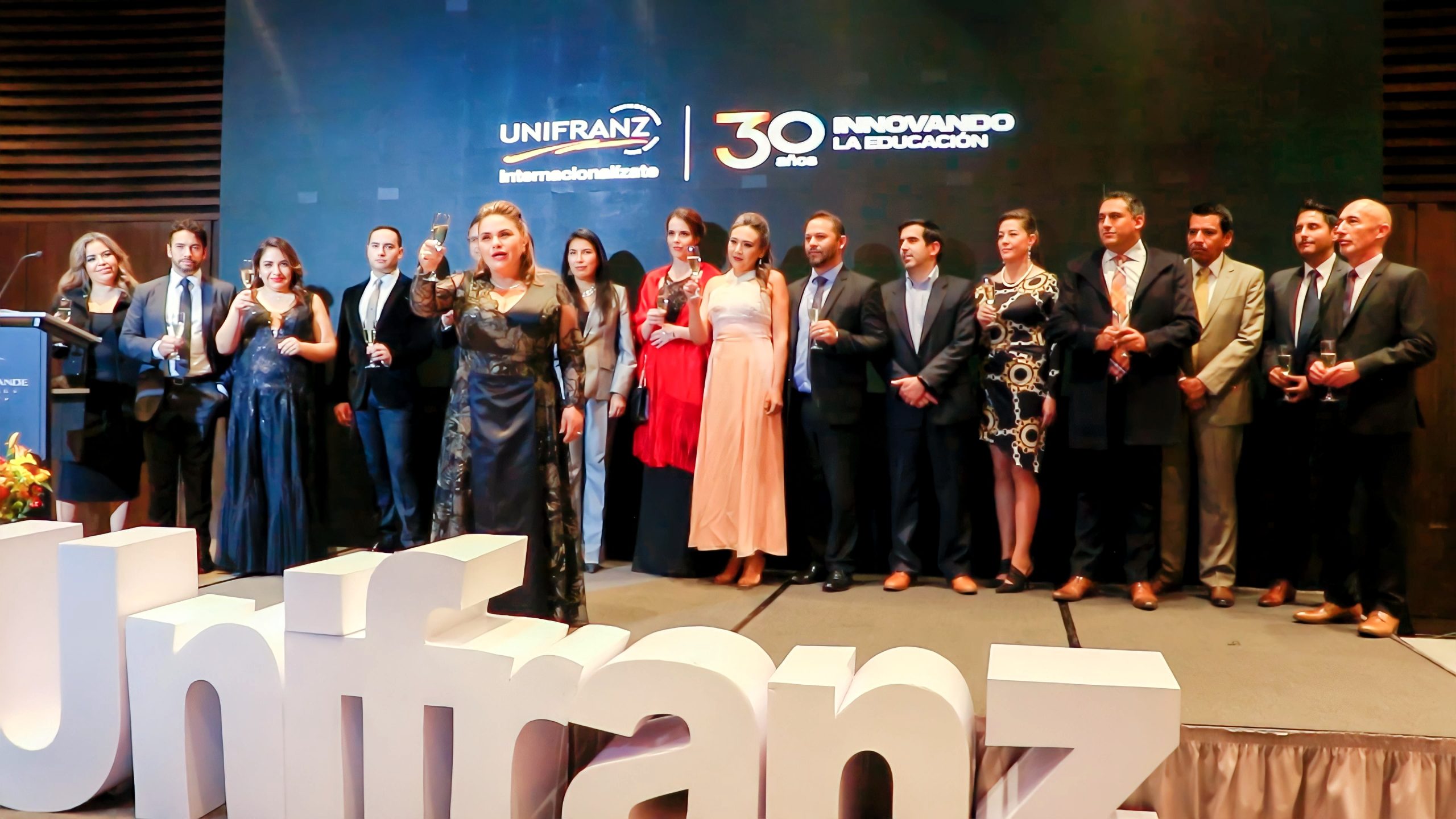 En un marco impresionante de aliados estratégicos, autoridades nacionales y municipales, cuerpo diplomático, empresarios e invitados especiales, Unifranz festejó los hitos más importantes de sus 30 años de vida y de trabajo sostenido en la transformación de la educación, particularmente en los departamentos de La Paz, El Alto, Cochabamba y Santa Cruz, en beneficio de la sociedad, el país y el mundo.