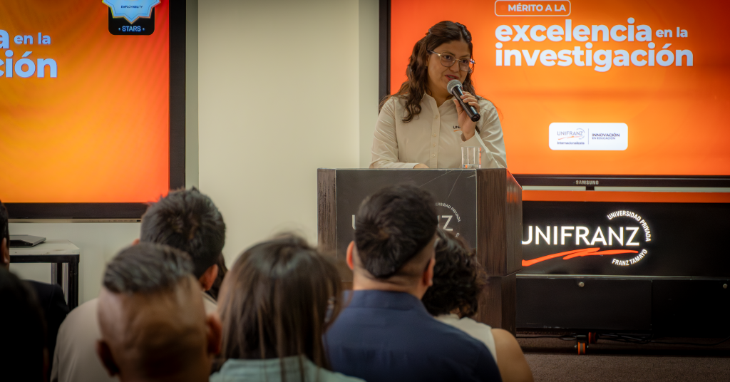 «La investigación en Unifranz no es aislada, es pertinente, aplicada y orientada a generar impacto real», afirmó la Coordinadora Nacional de Investigación de Unifranz, Lucía Alvarado Arnez. Su enfoque refleja una universidad que evoluciona hacia la innovación, donde el conocimiento se construye desde la práctica y responde a desafíos concretos.