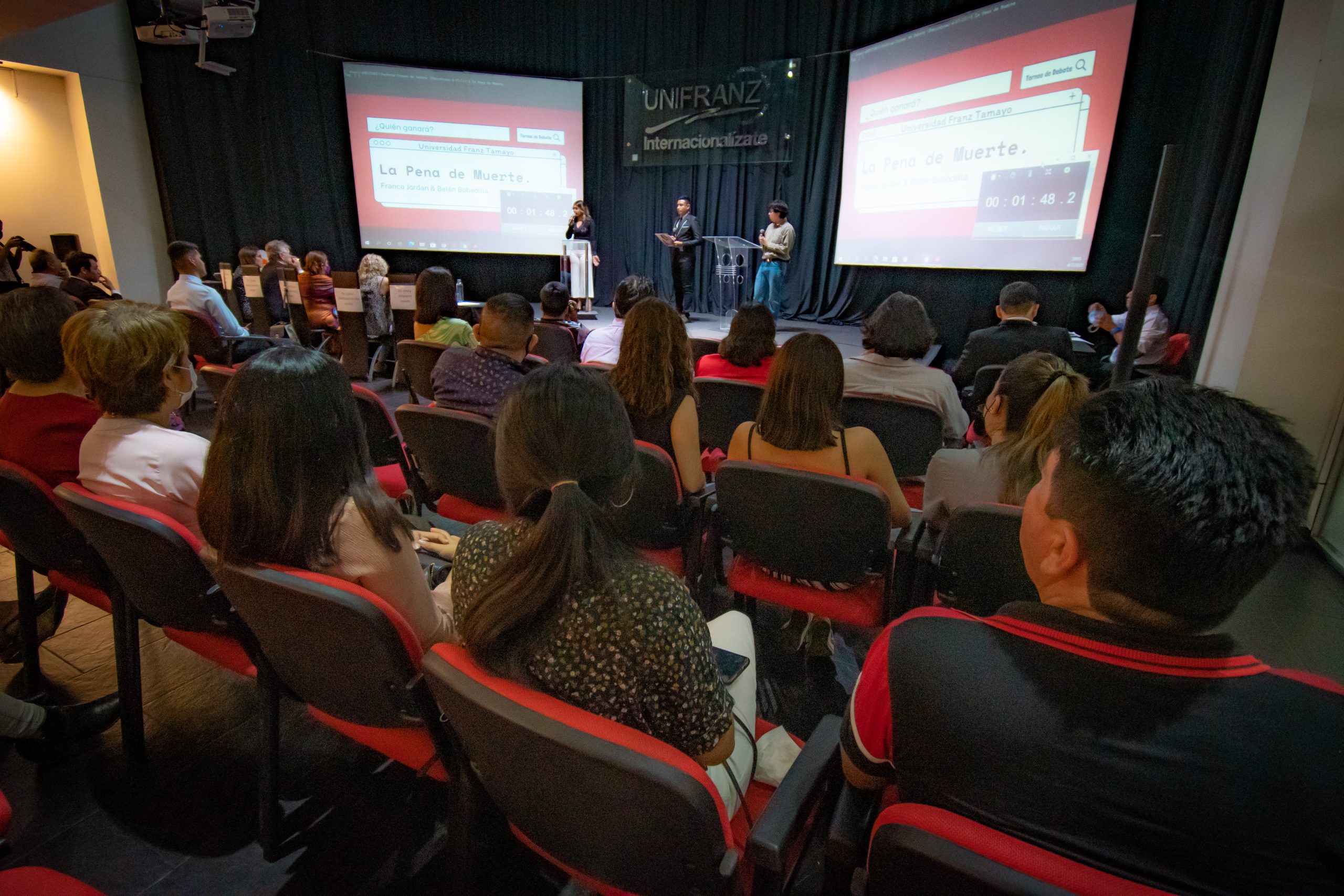 Con el propósito de que pudieran combatir sus inseguridades, desarrollar su léxico y la capacidad de análisis, Unifranz realizó el primer Torneo de Debates como una práctica real para los estudiantes de Periodismo. El defender un punto de vista con una serie de argumentos y contraargumentos los ayudó a manejar la aceptabilidad de diferentes conceptos sociales.