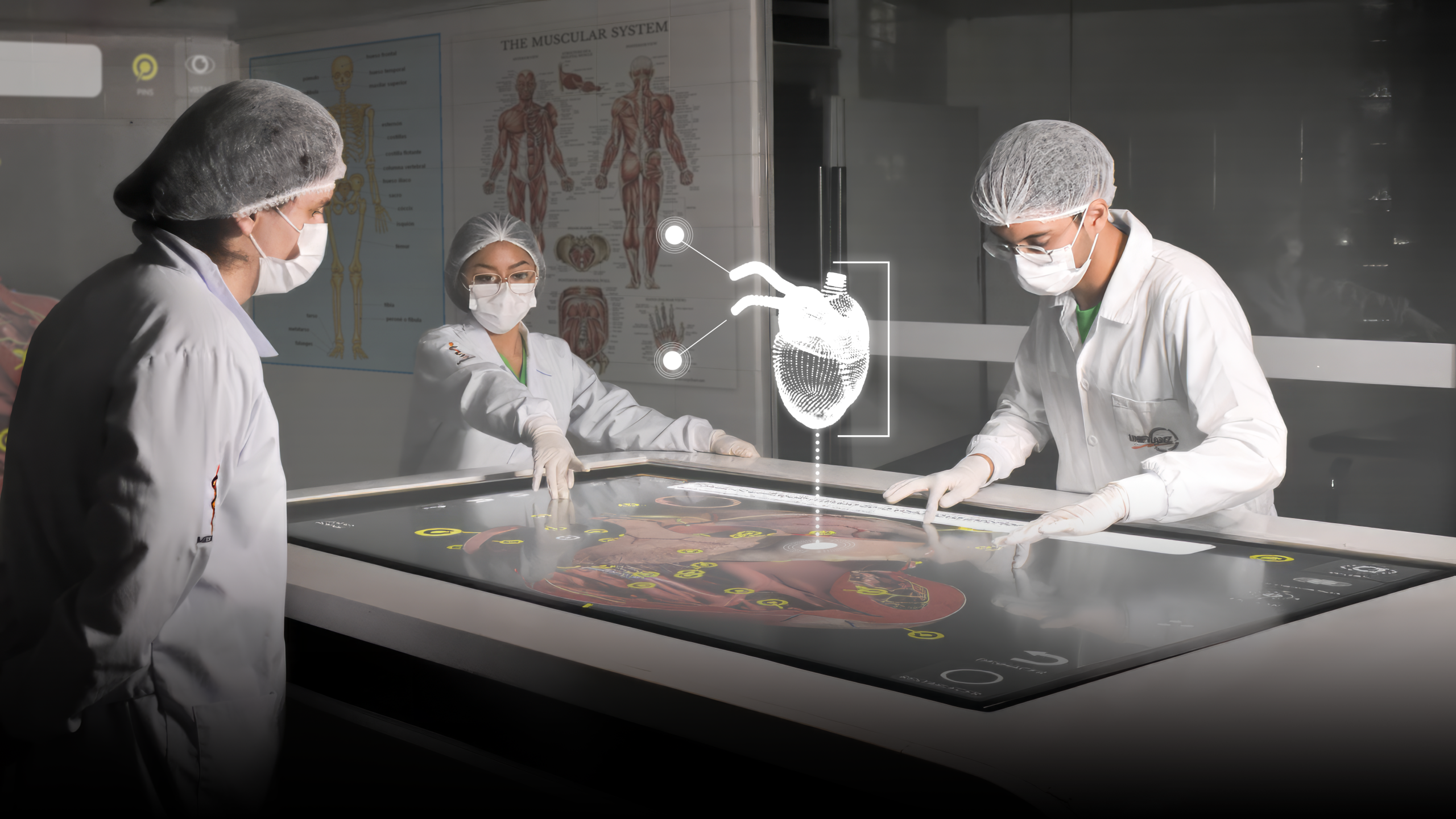 Estos espacios incluyen un electrocardiógrafo, mesas anatómicas virtuales tridimensionales, que permiten explorar las estructuras anatómicas del cuerpo humano en tercera dimensión, hacer cortes, separar órganos, músculos y otras partes.