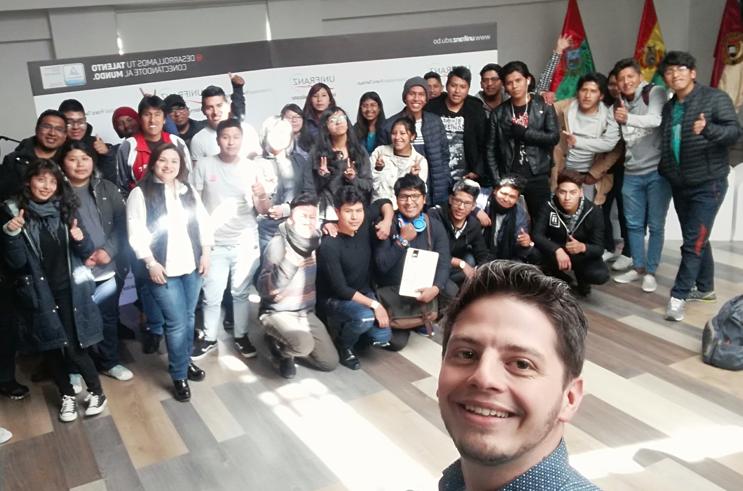 “Estoy muy agradecido por brindarme la oportunidad de hablar con jóvenes que están interesados en los que es la creatividad y a partir de ella poder lograr un impacto positivo en la sociedad. Es decir que, ellos, a partir del ejercicio de su profesión, tienen muchas ganar de hacer las cosas a favor de su entorno. Pondero mucho la asistencia y participación de los estudiantes de primer semestre de la carrera de Diseño Gráfico y Producción Crossmedia”, sostuvo Álvaro Cuéllar una vez finalizada su presentación.