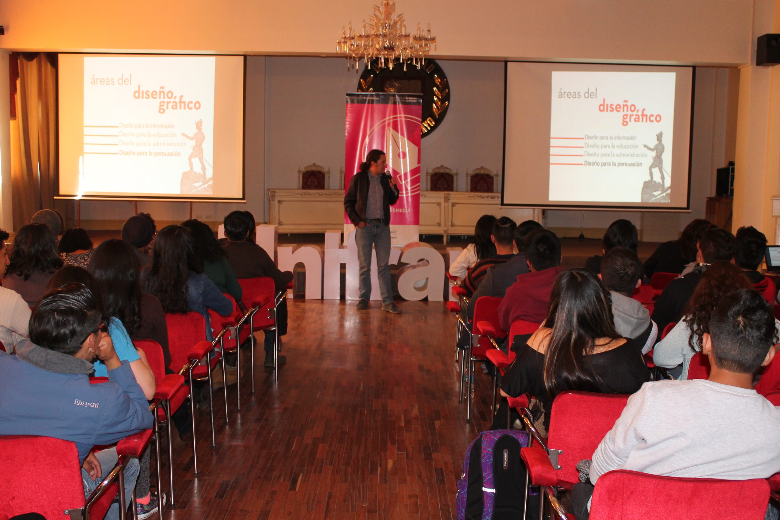 La Paz, Octubre 2018. Dentro del seminario “La experiencia de diseñar carteles cinematográficos”, la primera charla estuvo a cargo de Gabriel Sánchez, diseñador gráfico de carteles para temporadas de cine europeo, en Bolivia y revistas especializadas en cinematografía, quien realizó un análisis semiótico del cartel elaborado para el cine boliviano.