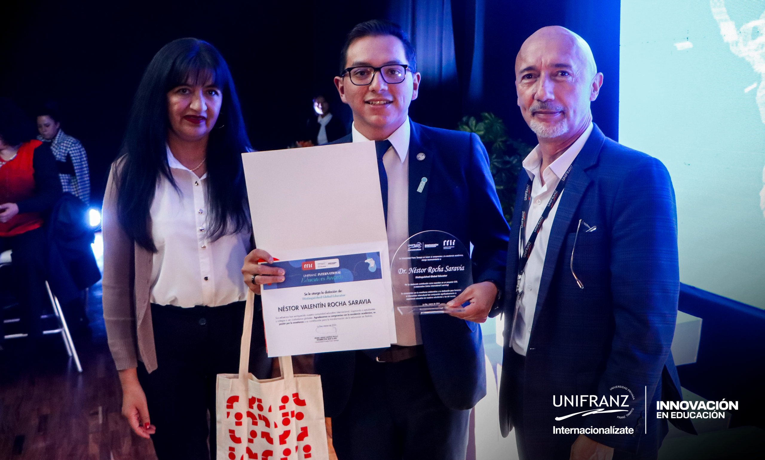 «Nuestra universidad se enorgullece de haber sido premiada en todas las categorías de los International Educators Awards, lo que demuestra nuestro compromiso y liderazgo en el ámbito de la internacionalización educativa», declaró Néstor Valentín Rocha Saravia, uno de los docentes premiados por las Aulas COIL en Unifranz La Paz.