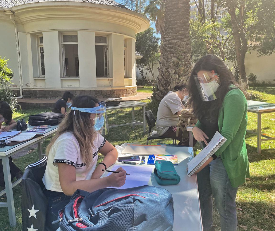 El taller se llevó acabo en los ambientes exteriores del Campus Cochabamba cumpliendo con todas las medidas de bioseguridad y las piezas gráficas producidas serán expuestas en el evento de clausura.
