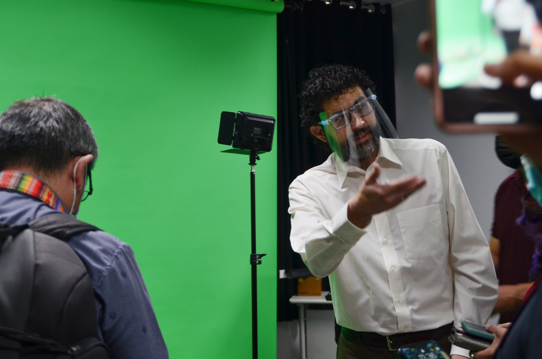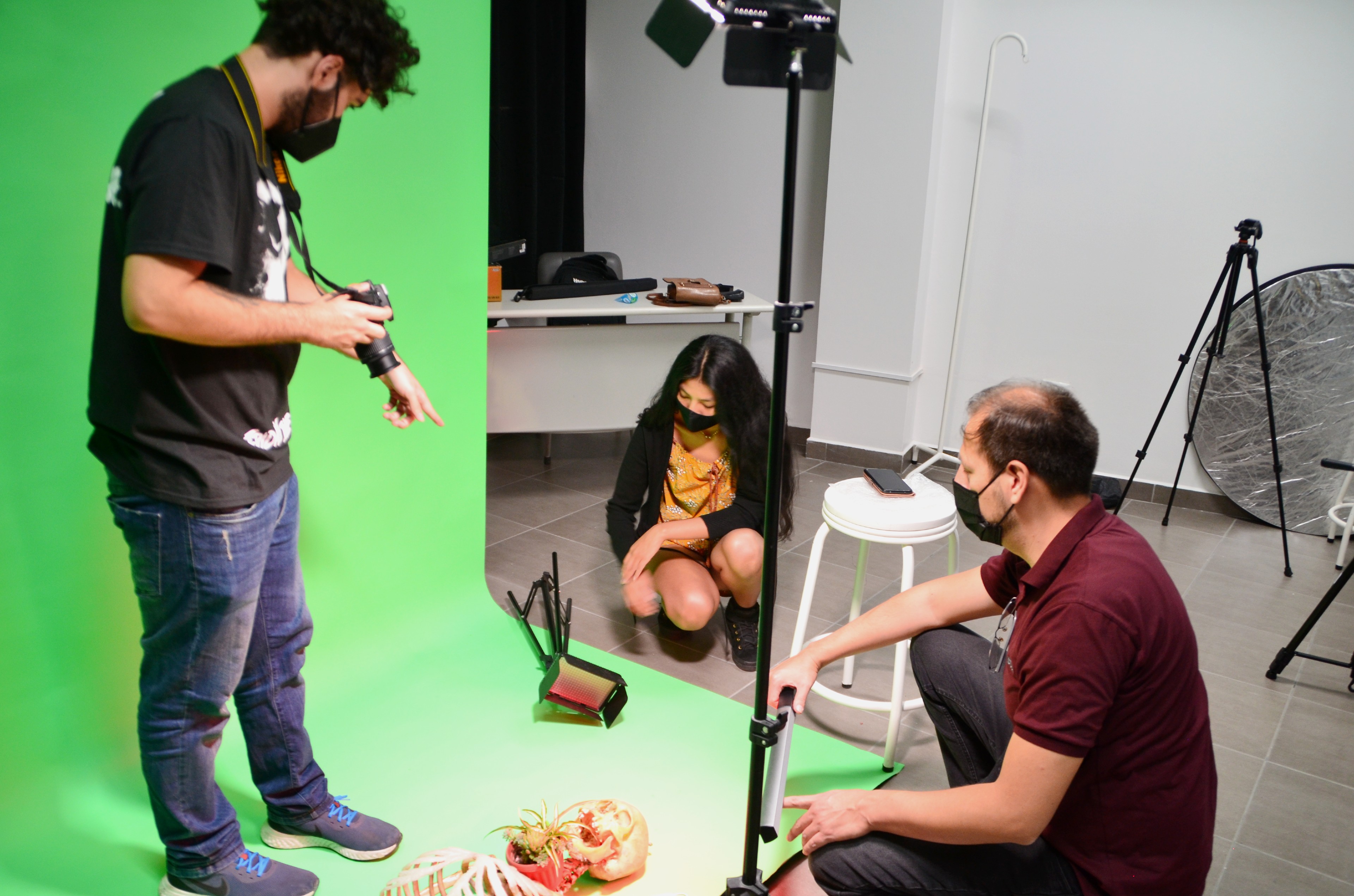 La sala Audiovisual: es un espacio para la producción de los elementos que darán forma a las ideas de los proyectos y piezas gráficas. Esta sala cuenta con una pantalla verde o chroma, equipos de foto, video e iluminación. Además, tiene una cabina de audio que funciona como un estudio de grabación con aislamiento de ruido y todo el equipo de sonido necesario para la creación de cuñas, voces en off y efectos de sonido.