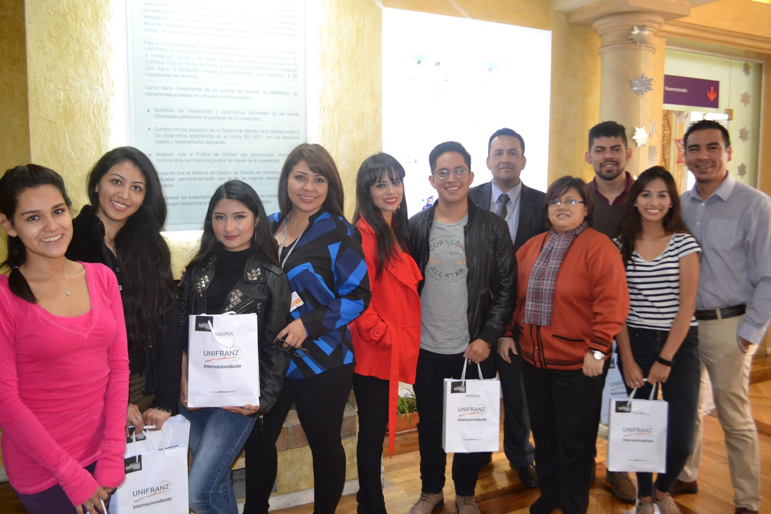 Nuestras autoridades Mgr. Raquel Guzmán Decana Académica, Dr. Carlos Zambrana, Secretario General, Lic. Karina Negrón, Directora de Servicios Estudiantiles realizaron una significativa reunión de despedida, para brindar la cortesía a los embajadores Unifranz quienes se ausentarán en sus diferentes destinos.