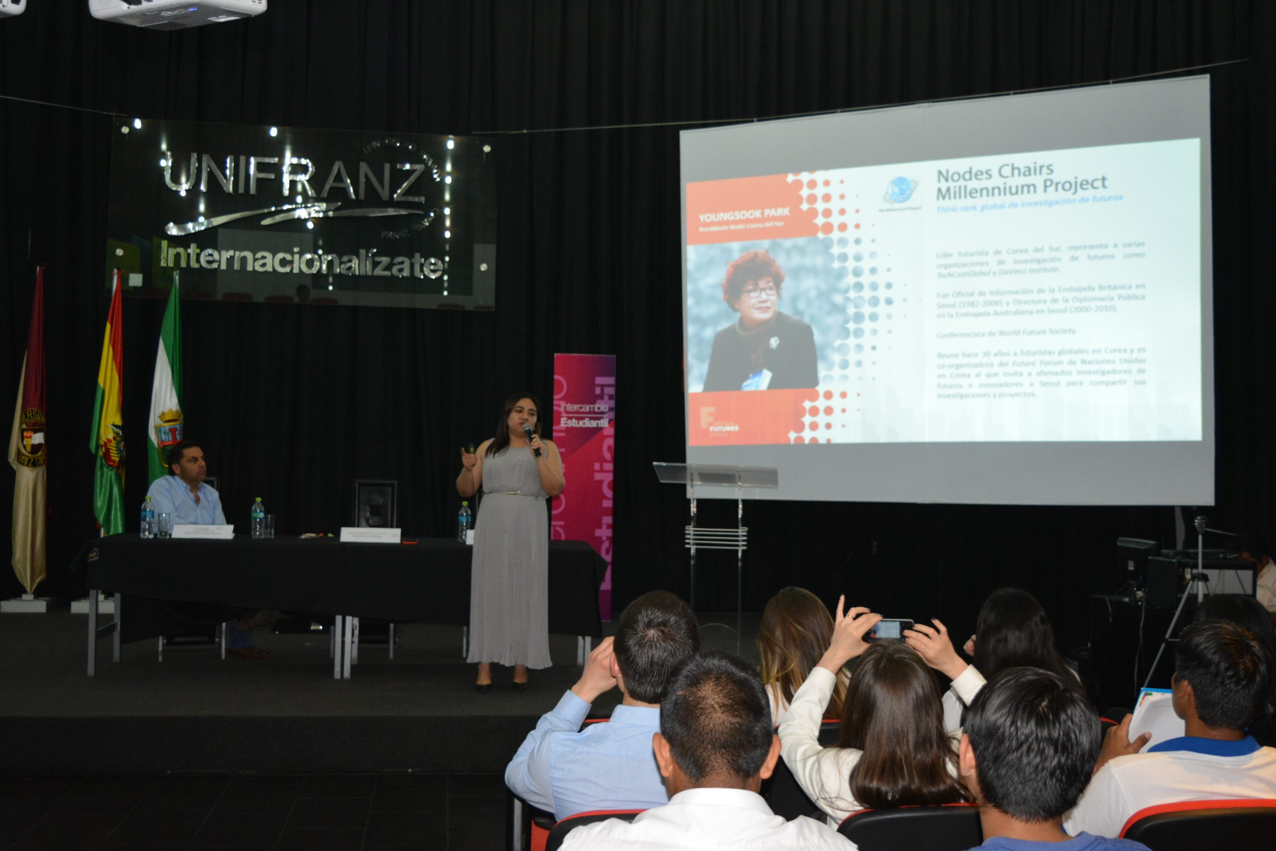 Santa Cruz, septiembre de 2018. Estudiantes de colegios y de la Universidad Privada Franz Tamayo en Santa Cruz mostraron gran interés por la convocatoria de la institución académica a que sean partícipes del Programa 2030 Construyendo Futuros, que se hará oficial en octubre durante la realización del evento mundial Futures Week organizado por UNIFRANZ.