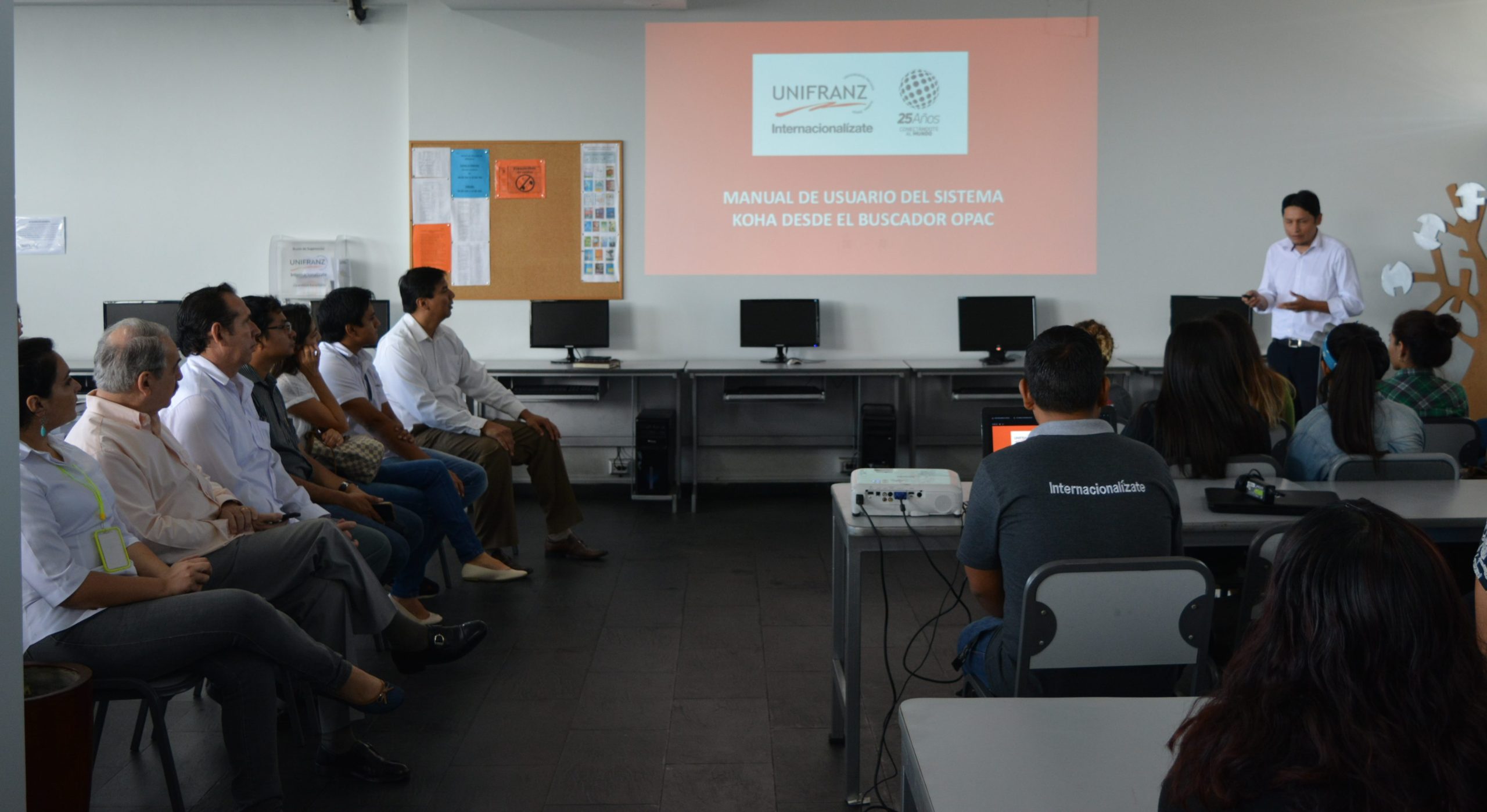 En la sede académica se realizó un open house para dar a conocer el manejo de este sistema informático, que permite conectarse y acceder al catálogo en línea (OPAC por su sigla en inglés) de las cuatro sedes de UNIFRANZ, hacer reservas y renovar préstamos vía online, utilizando cualquier tipo de terminal digital.