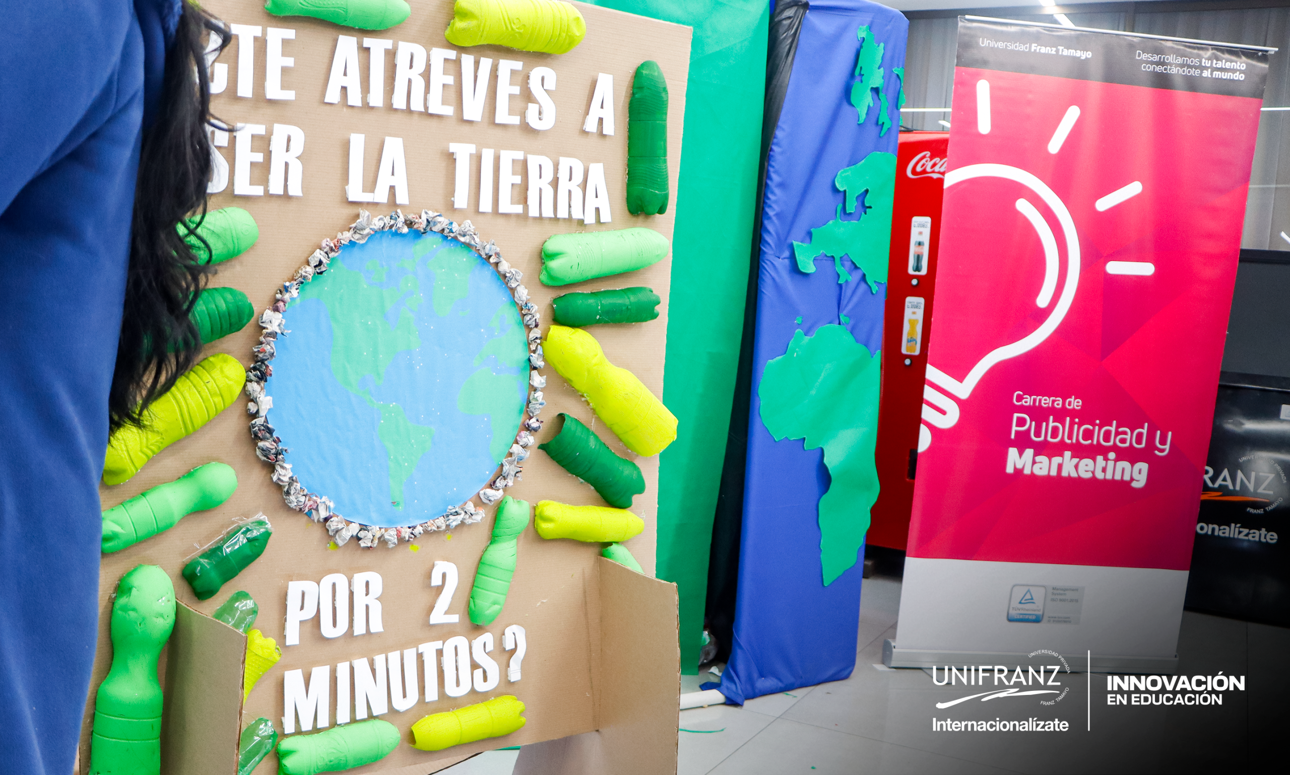 Estudiantes de la carrera de Publicidad & Marketing de la Universidad Franz Tamayo, Unifranz sede La Paz, construyeron un espacio inmersivo, similar a las salas de cine 4D, para recrear los efectos del calentamiento global. Un espacio atestado de basura, que combina olores, cambios drásticos de temperatura e imágenes impactantes, esperó a los asistentes a La Hora del Planeta.