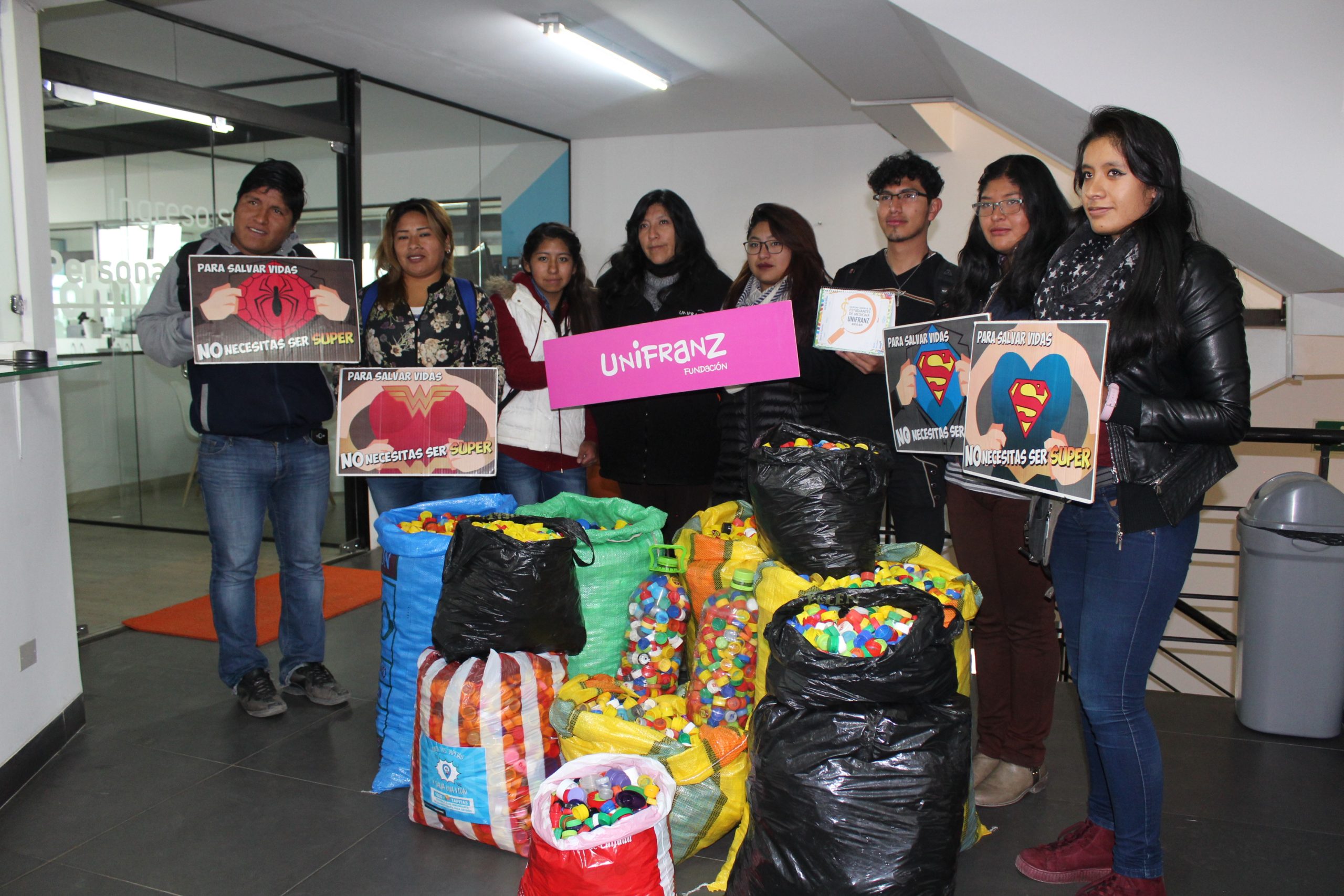 FUNDACIÓN UNIFRANZ RECOLECTO 40.000 TAPAS PARA FINANACIAR EL TRATAMIENTO DE NIÑOS CON CÁNCER