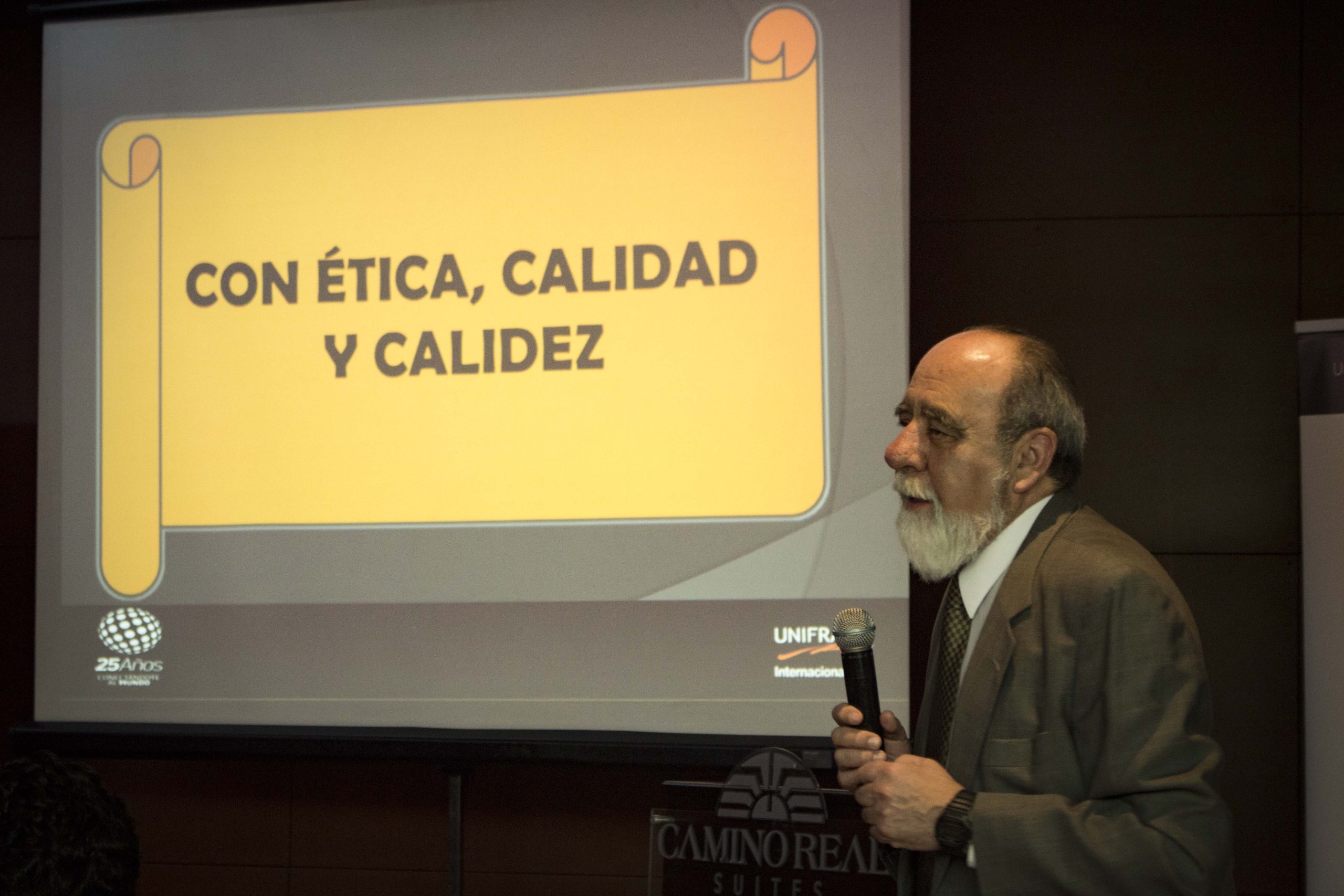 Como parte del apoyo de la UNIFRANZ, el Dr. Álvaro Muñoz-Reyes Navarro, Decano de la Facultad de Ciencias de la Salud, cerró el evento con la exposición sobre la importancia del enfoque por competencias en la educación en el área de la medicina. Además, destacó la capacidad que se adquiere con ese enfoque a la hora de resolver los problemas que se presentan a diario en consultas médicas de la comunidad.