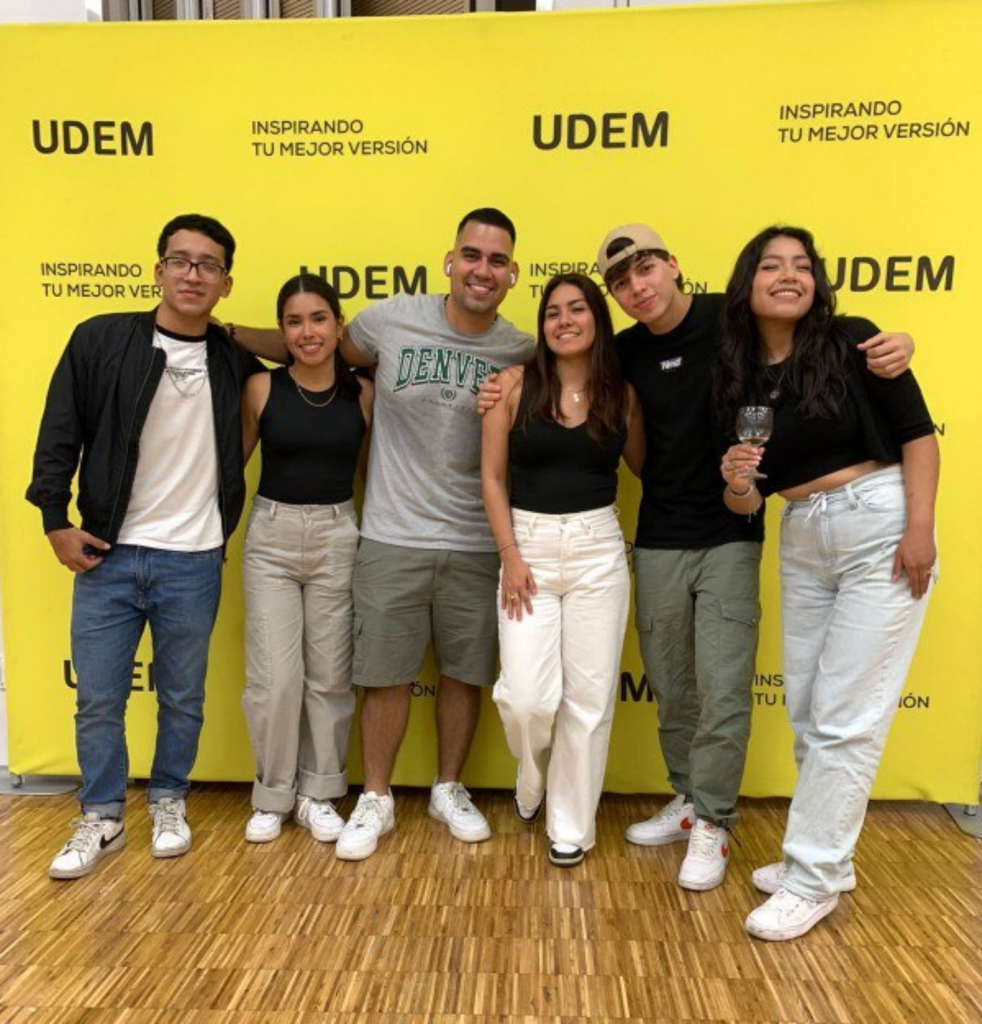 Bianca Mayorga, de Unifranz, con compañeros de carrera en la Universidad de Monterrey, México.