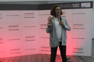 “Lo que he venido a decirles es: primero tienen que poner pasión, y es muy importante que lo que hagan lo realicen con pasión; segundo sin dudas las tecnologías están formando parte de todas las áreas del conocimiento humano y ninguna queda exenta de ella. Si algunas de ellas deciden hacer una carrera de tecnología, genial, pero si deciden saber lo suficiente de tecnologías como para entender luego como estas pueden impregnar la arquitectura, la medicina, la biología, y cualquier otra ciencia, perfecto”, explicó Mónica Gómez durante el Seminario dictado en UNIFRANZ EL Alto.