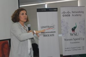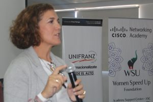 El Alto. Julio. Con el objetivo de fortalecer las competencias y habilidades de las mujeres en el uso de las tecnologías y el desarrollo de sistemas, UNIFRANZ El Alto realizó, en alianza con la Fundación Women Speed Up (WSU) y Cisco Networking Academy, la Primera Versión del Seminario Internacional Mujeres Talentosas en los Avances Tecnológicos ¡Girls Talent in TECH Speed UP!, certificado por la reconocida compañía internacional CISCO.
