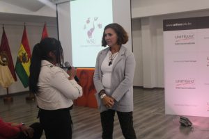Una de las principales organizadoras de este Seminario Internacional fue Tatiana Rengel, Directora de la Fundación Women Speed Up Bolivia, organización que busca generar mayor participación de la mujer en las carreras tecnológicas. “Gracias a UNIFRANZ El Alto hoy estamos compartiendo con estudiantes de colegios el evento Girls Talent in TECH Speed UP que busca promover la participación de las mujeres en las carreras de tecnología. Sólo el 25 por ciento de estudiantes de ramas tecnológicas son mujeres. También en Bolivia se puede observar son pocas las mujeres que estudian una carrera sobre tecnología”, agrega Tatiana Rengel.