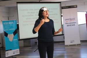 La organizadora del evento, Ximena Mamani, Directora de la Carrera de Administración de Empresas UNIFRANZ, explicó que el taller de negociación permitió a los estudiantes identificar las distintas habilidades y estrategias requeridas para entablar una negociación exitosa. “La negociación es una actividad frecuente en nuestra vida cotidiana que condiciona de alguna manera nuestra vida personal y profesional; porque a diario negociamos con amigos, familiares, compañeros, jefes u otros” expuso.