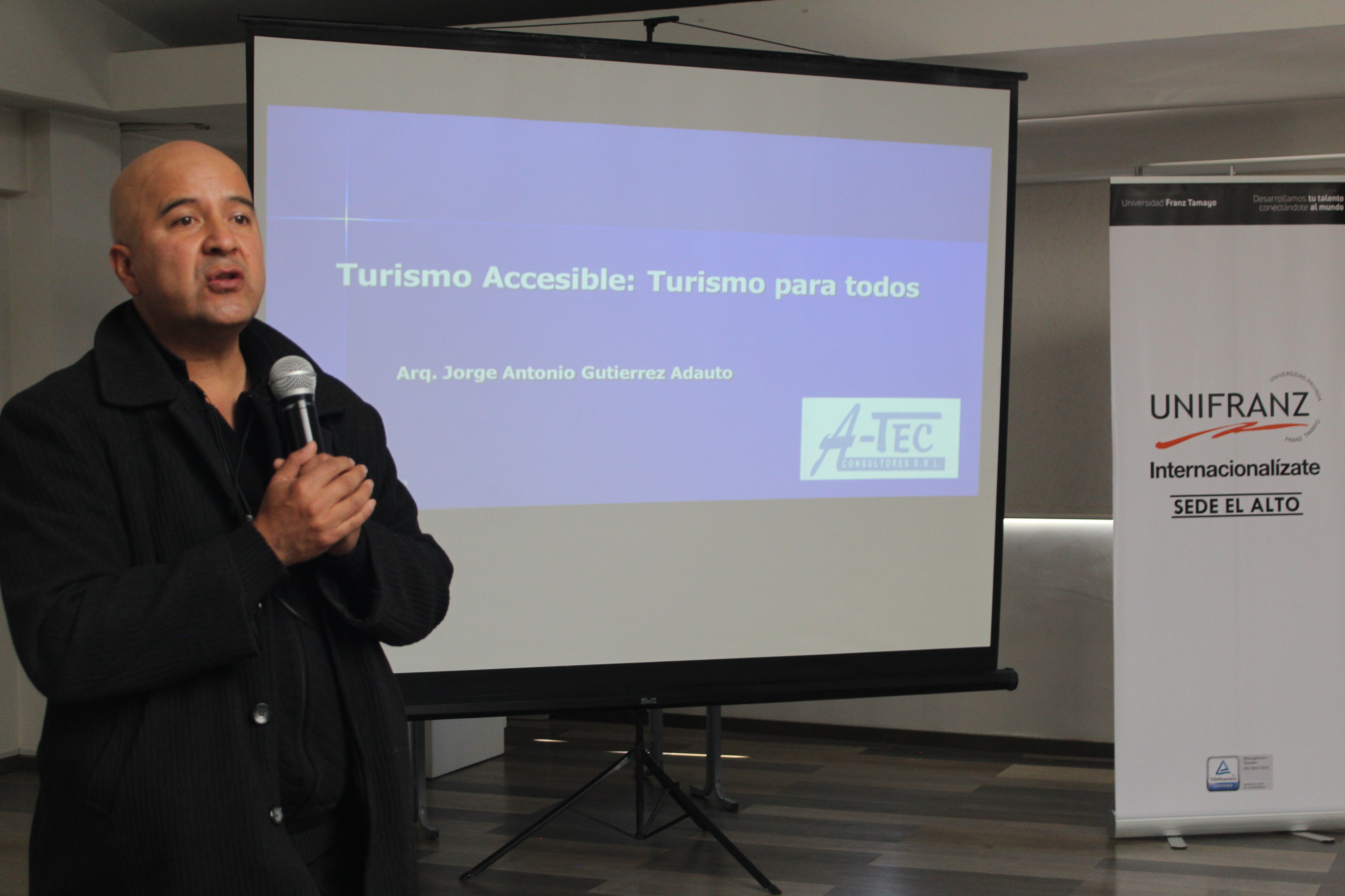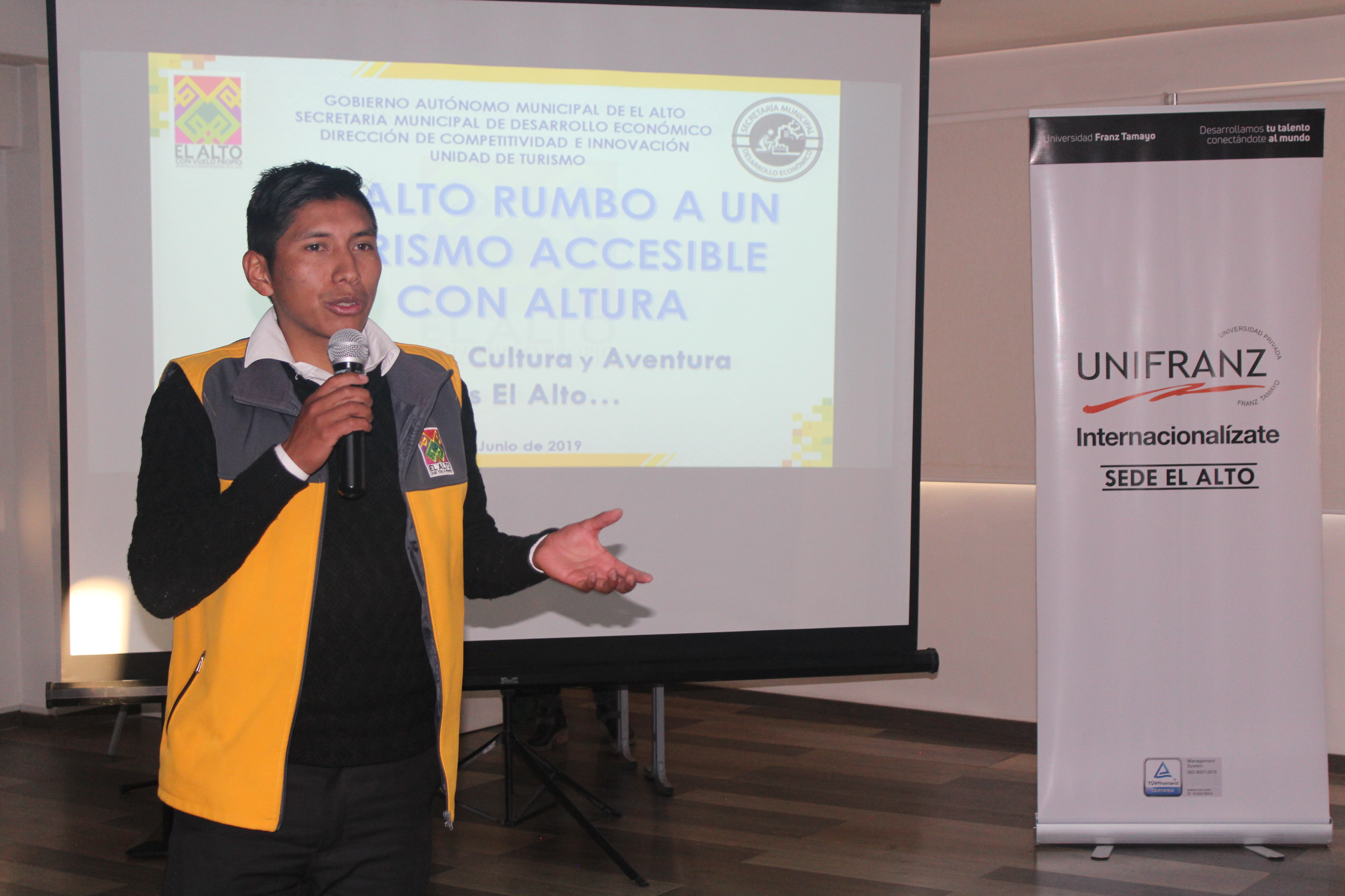 El Alto. Julio. La carrera de Administración de Hotelería y Turismo de UNIFRANZ El Alto organizó el Primer Taller de Turismo Accesible: Turismo para Todos con el objetivo de generar un espacio de debate para generar conciencia sobre la responsabilidad de desarrollar un Turismo más inclusivo para personas con discapacidad en particular en la urbe alteña y con miras a replicar en toda Bolivia.