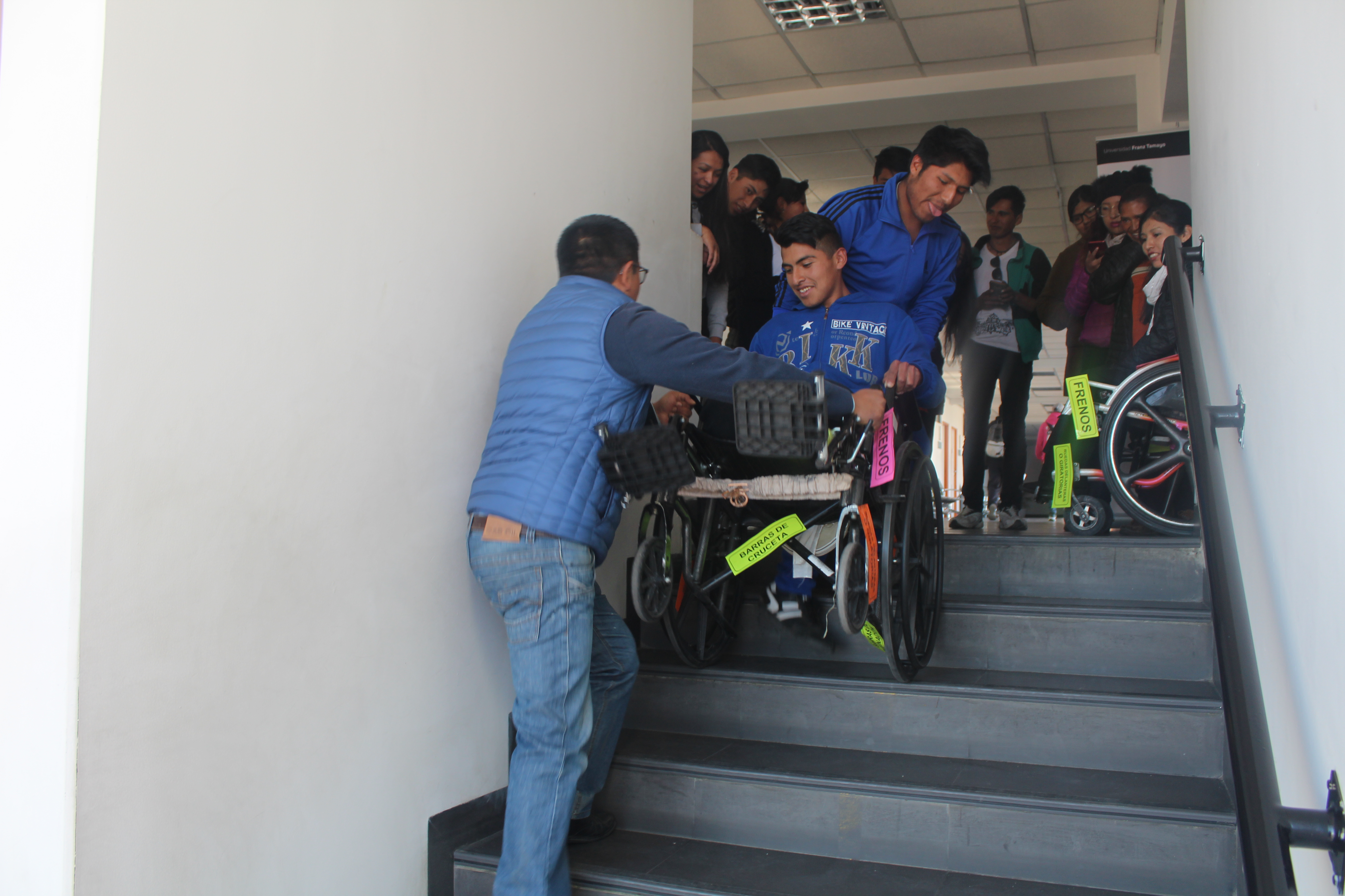 Como cierre del taller, los estudiantes de la carrera de Administración de Hotelería y Turismo realizaron prácticas donde debían ayudar a subir y bajar gradas a compañeros de carreras que estaban en sillas de rueda. De esta manera, los estudiantes pudieron colocarse en el lugar de personas con discapacidad, entendiendo las barreras que deben sortear y las dificultades a las que deben sobreponerse.