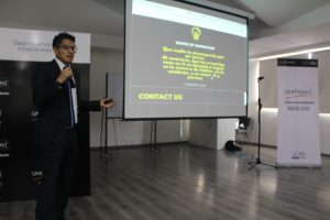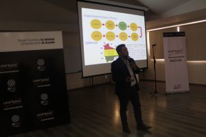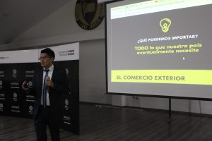 Miguel Huanca Cortez, Ingeniero Comercial experto en Logística, Aduanas y Transporte, expuso sobre el rol que los países desarrollan en el mundo y las oportunidades de negocios que ofrece Bolivia a partir del papel que cumple en el contexto internacional. De esta manera, Huanca Cortez apuntó con su conferencia a que los estudiantes se transformen en agentes de cambio innovadores. “La idea es acoger lo que tenemos de bueno y en lo que somos buenos y sacarlo al mundo”, agregó.