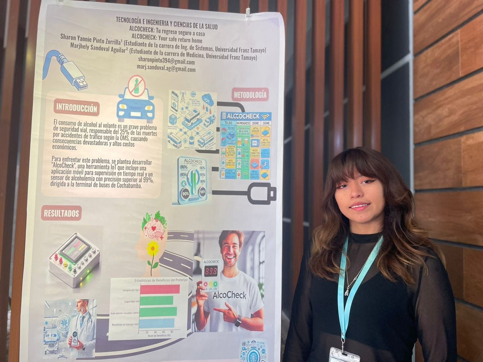 Cada año, según la Organización Mundial de la Salud (OMS) 1.3 millones de personas mueren en accidentes de tránsito en el mundo. En Bolivia, el 30% de estos accidentes fatales están relacionados con consumo de alcohol, y otro porcentaje significativo con fatiga del conductor. Son cifras que duelen. Son familias rotas, viajes que nunca terminaron, abrazos que no se dieron. Pero hay quienes no se conforman con leer estadísticas: deciden cambiarlas. Sharon Pinto Zorrilla es una de ellas. Por eso creó «AlcoCheck»