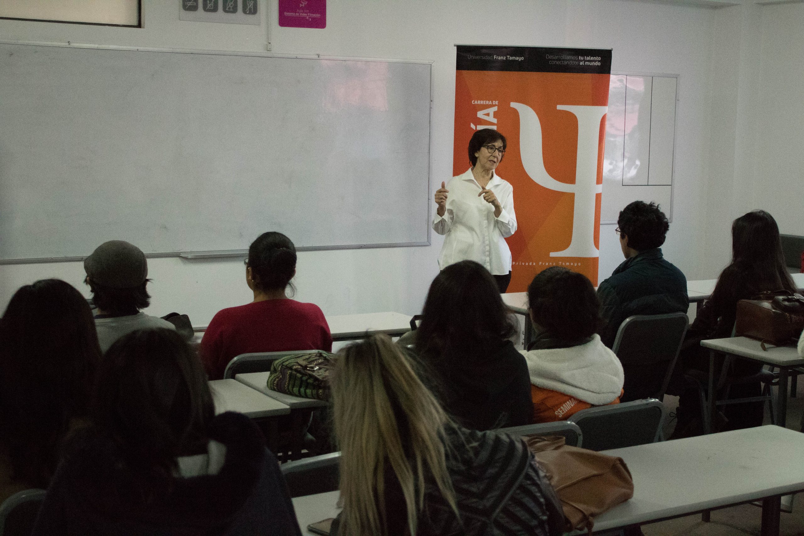 La Paz. Abril. Estudiantes de Psicología promovieron la conferencia ¿Qué harías con tu tiempo si tuvieras una renta básica? desarrollada, por Juana Pérez Montero, periodista española, editora de la agencia de noticias Pressenza y activista humanista, quien a través de un documental brindó información relevante sobre la importancia de tener una renta básica y las consecuencias que genera no tenerla.