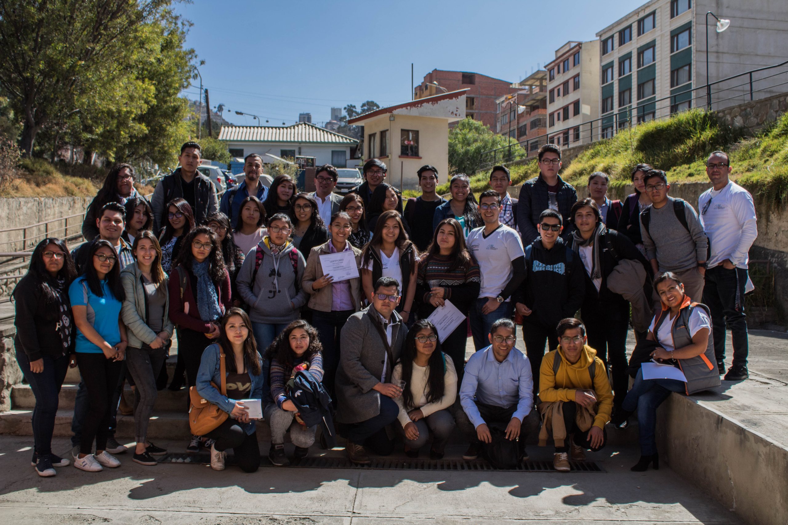 Los estudiantes fueron parte de un taller acelerado que les permitió homogenizar criterios sobre la herramienta. En grupos de seis personas, de distintas ciudades, se realizaron seis diferentes alternativas a la problemática planteada por el GAMLP: «Incremento de la cantidad de accidentes e inseguridad ciudadana por el uso de móviles en vía pública por peatones».