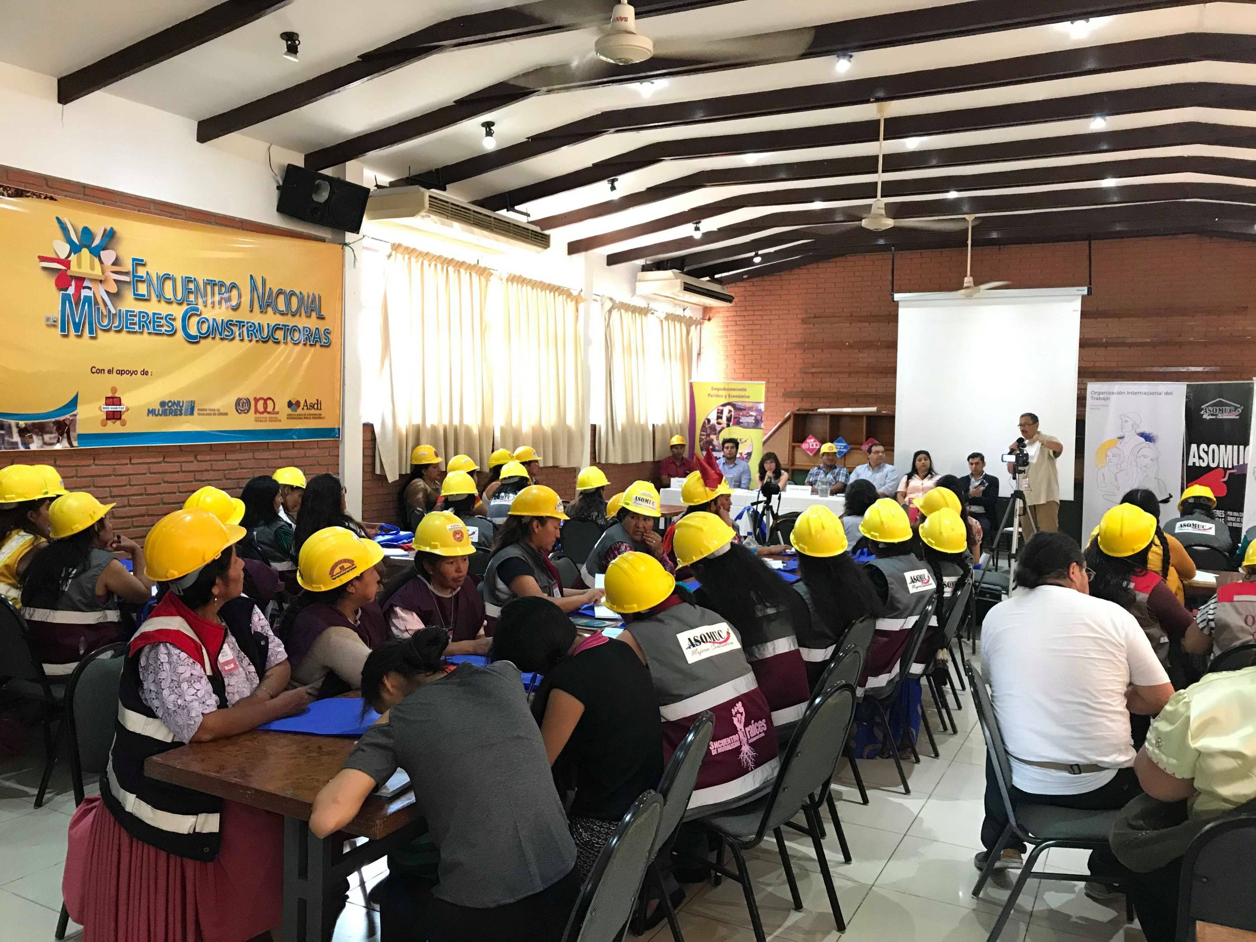 Al evento asistieron trabajadoras de la construcción de varias instituciones, como los gobiernos autónomos departamentales y municipales, y otras entidades, y obreras organizadas en asociaciones, sindicatos, cooperativas, micro-empresas, etc. Las delegaciones representaron a Santa Cruz, Cochabamba, Tarija, Potosí, Sucre, Oruro, Pando, Riberalta, La Paz y El Alto.