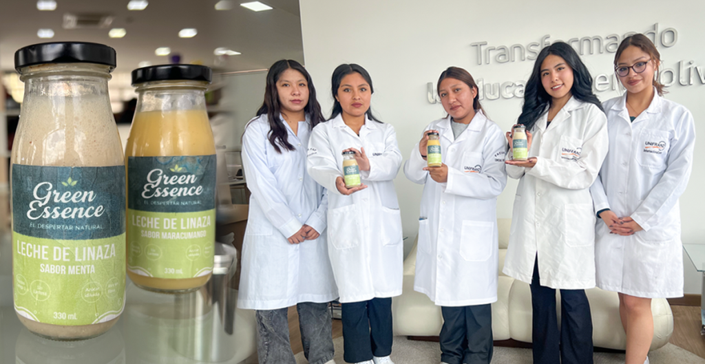 Green Essence es una bebida vegetal de linaza creada por estudiantes de Bioquímica y Farmacia de Unifranz. Rica en omega-3 y totalmente natural, ofrece beneficios para personas con diabetes tipo 2 y quienes buscan alimentación funcional, salud metabólica y alternativas más saludables.